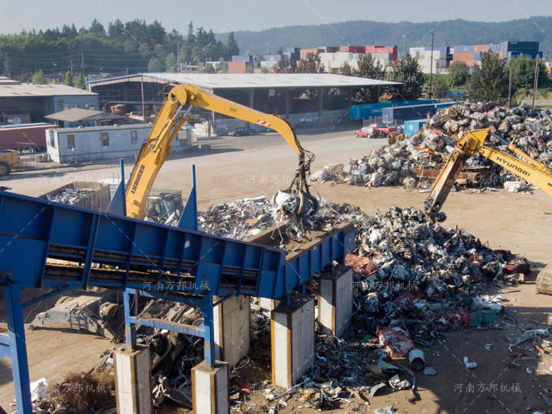 產(chǎn)品概述:廢鋼破碎機(jī)是金屬資源循環(huán)利用的關(guān)鍵設(shè)備,主要用于處理各類廢舊鋼材。它可高效破碎報(bào)廢汽車、廢舊鋼結(jié)構(gòu)、鋼板、鋼屑、生活廢鋼、工業(yè)廢鋼等多種金屬廢料,通過破碎工序?qū)⒉灰?guī)則廢料加工成規(guī)格統(tǒng)一的破碎料,大幅降低運(yùn)輸成本、增強(qiáng)廢鋼密度實(shí)現(xiàn)高價(jià)值破碎回收,萬邦廢鋼破碎機(jī)產(chǎn)量可滿足0.4-300t/h的破碎處理量,生產(chǎn)線規(guī)劃可滿足破碎、分選作業(yè)要求。